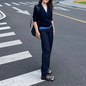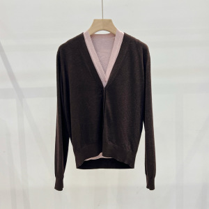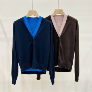 JN家 25秋季新款 时尚通勤白带羊毛两件套针织衫马甲+开衫