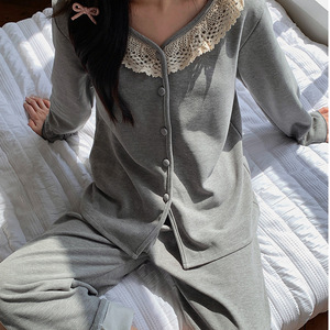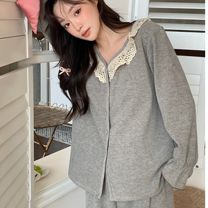 带胸垫睡衣女秋冬新款保暖长袖羊绒蚕丝宽松韩系甜美花边家居服