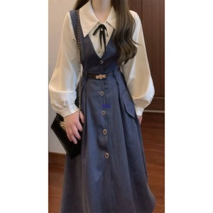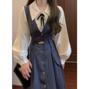 【韩系学院风背心连衣裙子女早初秋新款小个子气质衬衫穿搭套装长