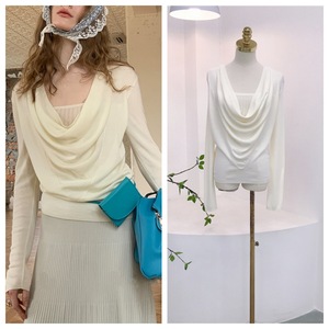8151假两件针织上衣秋季14针法式复古荡领镂空高捻天丝慵懒打底衫