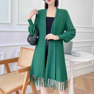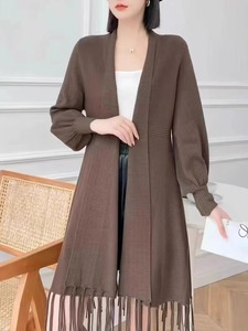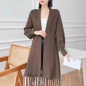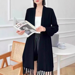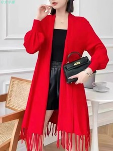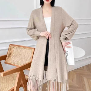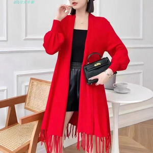 新款秋冬披肩针织开衫女修身显瘦中长款外搭洋气上衣流苏毛衣外套