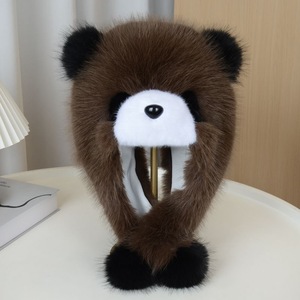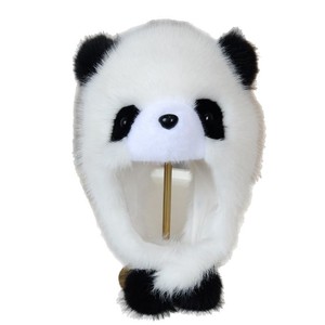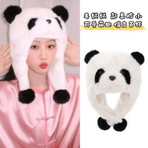 帽子女秋冬季可爱卡通小熊猫护耳帽加厚保暖毛绒套头帽防风雷锋帽
