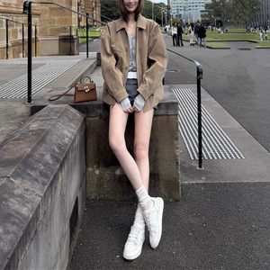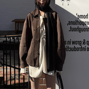 复古风麂皮夹克上衣女2025秋季设计感宽松显瘦巨好看绝美工装外套