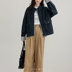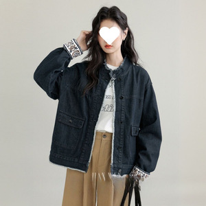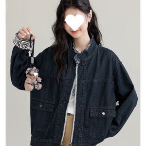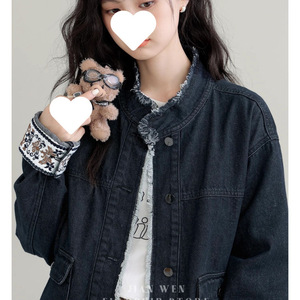 2025春秋新款复古立领牛仔外套女设计感宽松港风牛仔衣短夹克上衣