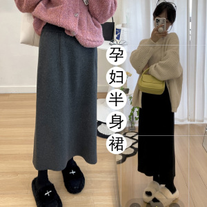 孕妇半身秋冬季中长款潮妈时尚针织毛线加厚托腹后开叉包臀裙