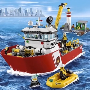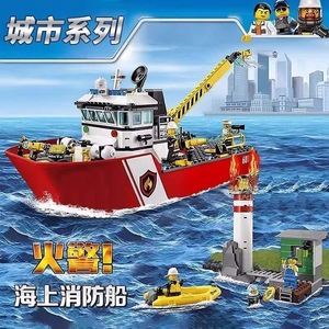 兼容乐高积木城市系列海上救援消防船模型儿童拼装玩具男孩子礼物
