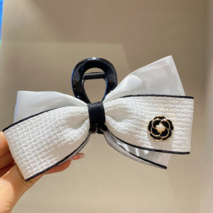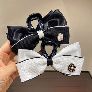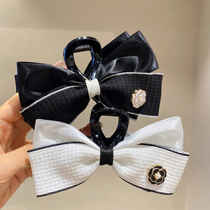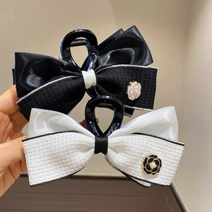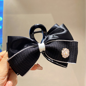 早春款小香风蝴蝶结优雅抓夹女黑色复古精致花朵后脑勺盘发鲨鱼夹