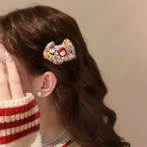 超重工的~秋冬毛线小狗发夹女水钻边夹侧边刘海夹前额碎发鸭嘴夹