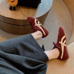 牛皮葡萄ma同款时髦撞色德训鞋女系带百搭休闲运动鞋学院风阿甘鞋