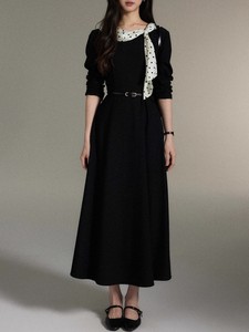 黑色 波点飘带一体 含腰带