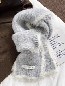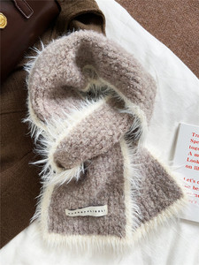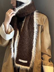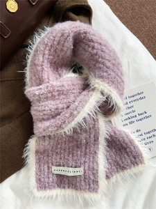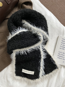 2025秋冬新款撞色毛边针织围巾女韩版ins时尚保暖毛线围脖学生潮
