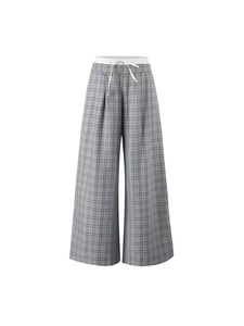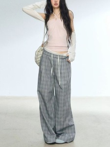 原创设计款浅色格纹休闲裤时尚百搭显瘦直筒拖地长裤女