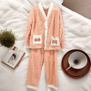 珊瑚绒开衫睡衣套装女2025秋冬新款外穿加厚保暖可爱法兰绒家居服