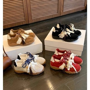 牛皮~葡萄ma同款增高6cm鸳鸯鞋带串珠拼色厚底德训鞋女休闲运动鞋