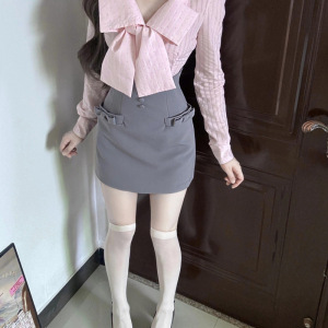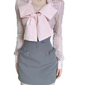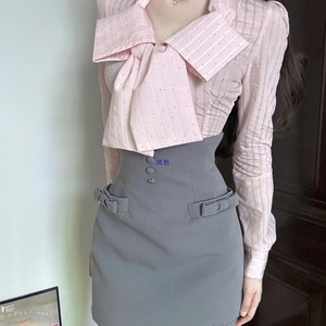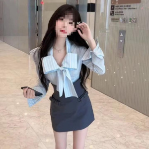 蝴蝶结条纹衬衫制服两件套女2025年新款美式学院风纯欲甜辣裙套装