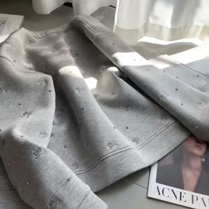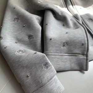 刘掌柜感重工玫瑰烫钻拉链卫衣外套女2025早秋宽松上衣潮
