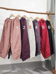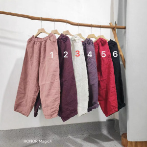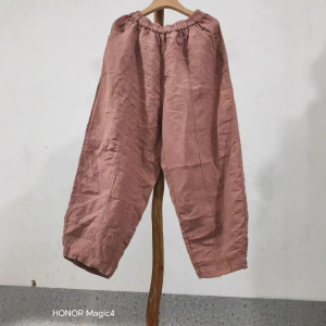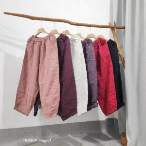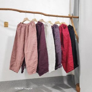 2025秋季韩版宽松简约砂洗亚麻拼接纯色松紧腰哈伦裤百搭休闲裤女