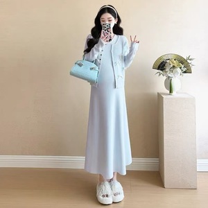 孕妇春秋装连衣裙高级感孕妈穿搭2025新款长袖针织开衫哺乳背心裙