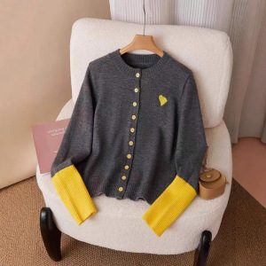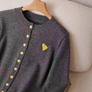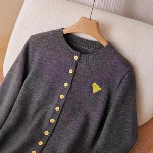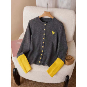 2025年秋季新款爱心拼接单排扣撞色厚款针织开衫外套毛衣女