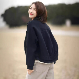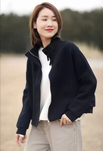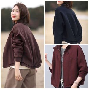 新品复古通勤开衫双层后背设计上衣夹克立领外套