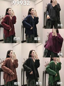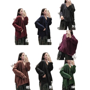 新品文艺复古V领净版下摆设计百搭宽松针织套头毛衣