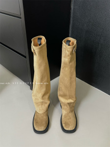 2025冬新款甜酷风拉菲裤管靴粗跟厚底增高两穿靴子女