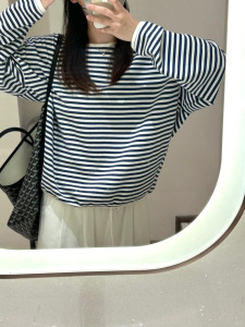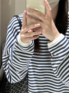 撞色条纹ins风宽松圆领卫衣长袖女2025秋季韩系松弛感百搭T恤上衣