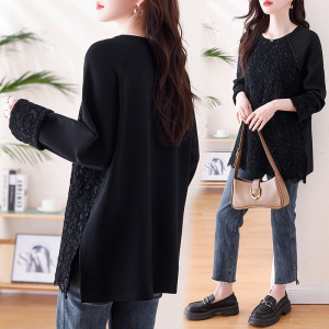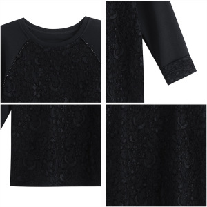 2025年新款大码女装气质蕾丝拼接钉珠卫衣女春季欧货黑色上衣