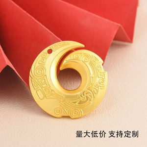时来运转金色古法沙金项链坠男女吊坠挂绳平安扣镀金百福圆环古风