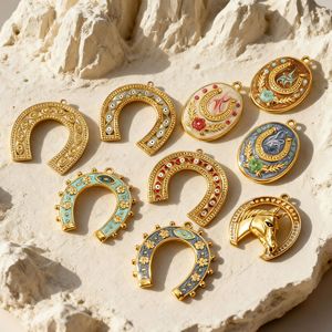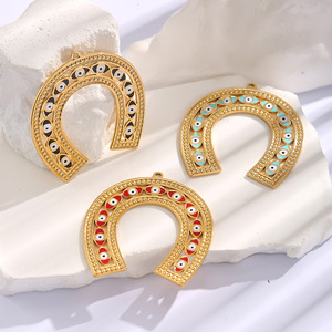 不锈钢民族风U型马蹄铁吊坠滴油珐琅彩绘DIY手链项链饰品配件批发