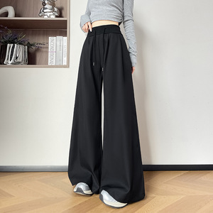 军绿色运动卫裤女秋季2025新款美式休闲低腰直筒宽松阔腿裤子