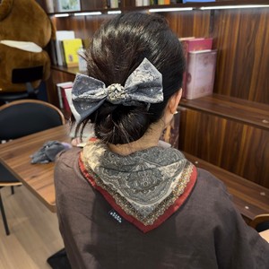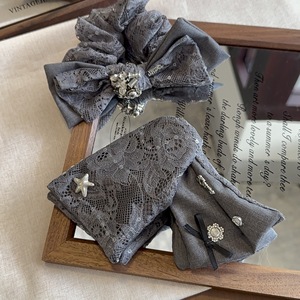 韩版发抓新品灰色布艺蝴蝶结鲨鱼抓夹蕾丝拼接布艺扎马尾发圈发绳