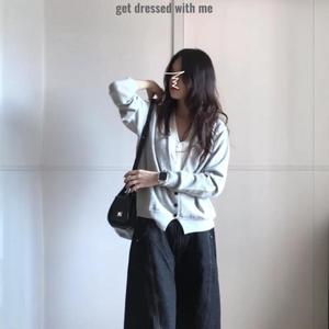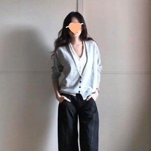 蜜妃儿复古撞色v领假两件针织衫外套女秋冬修身感时尚上衣潮