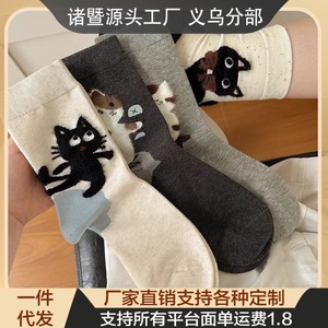 秋季款新品简约甜美设计卡通猫咪后跟小猫跟随ins潮高颜值中筒袜