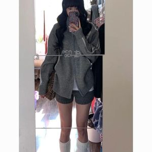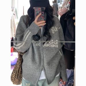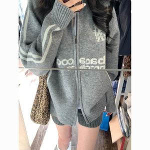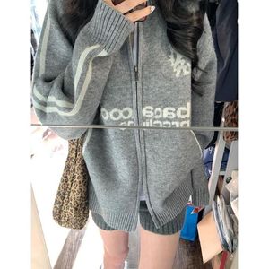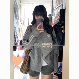 美式复古上衣秋冬新款外套针织拉链棒球服慵懒宽松毛衣开衫百搭