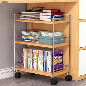 桌下置物架书桌旁书架学习桌边落地可移动书本收纳滑轮带轮小推车