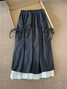 设计感拼接蕾丝半身裙女秋季毛呢长裙大码胖mm高腰显瘦韩系a字裙