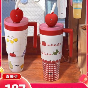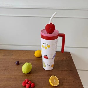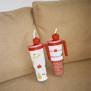 Tagi. 怦怦花田吨吨杯大容量车载保温杯冰霸杯吸管杯不锈钢水杯