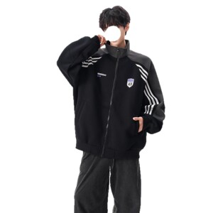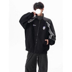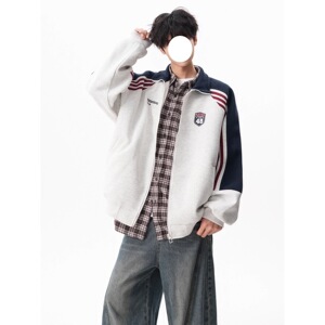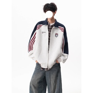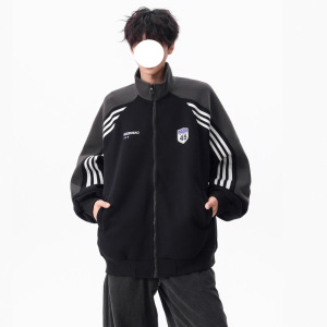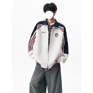 高街运动开衫卫衣外套男款秋季新款美式撞色情侣休闲立领夹克上衣