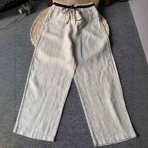 夏季宽松透气亚麻裤子休闲早秋新款小个子阔腿裤通勤休闲直筒裤