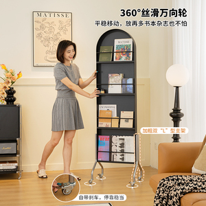 【轻奢黑】全身镜杂志架一体-360°静音万向轮