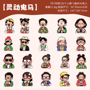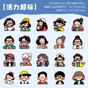悦真元气达人pet贴纸手帐贴纸包 跨境手帐素材儿童贴纸卡通贴画