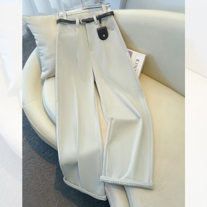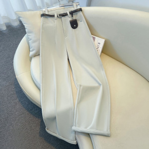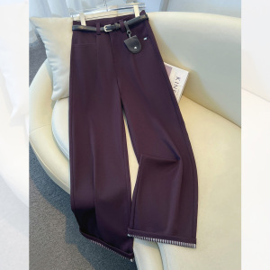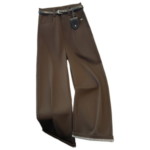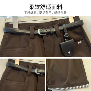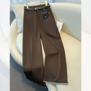 咖色翻边西装阔腿裤女春秋季2025新款设计感直筒小个子九分休闲裤