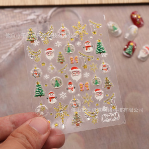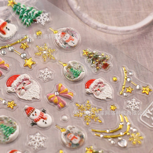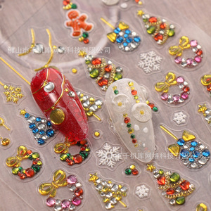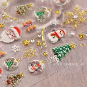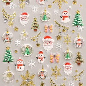 带钻果冻立体5D浮雕圣诞节美甲贴纸圣诞老人圣诞树圣诞礼物贴纸厂