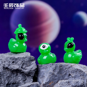 创意摆件外星人小鸭子迷你动物 diy树脂工艺品小配件桌面车载装饰