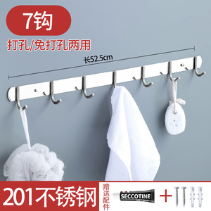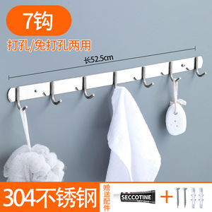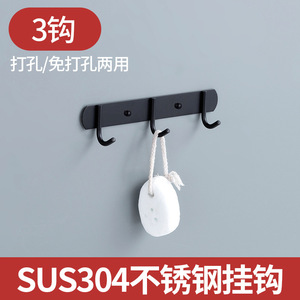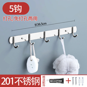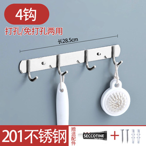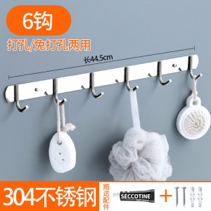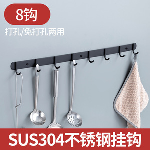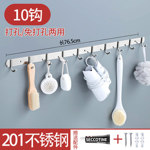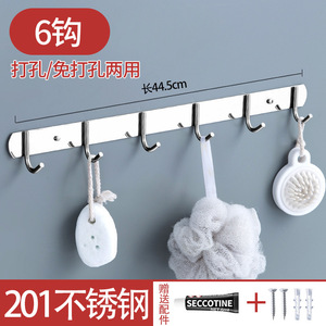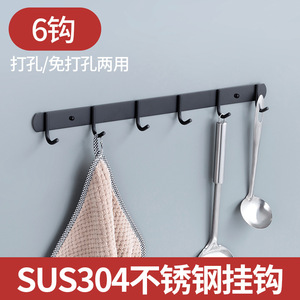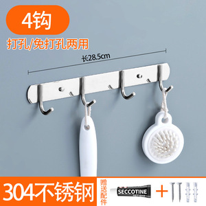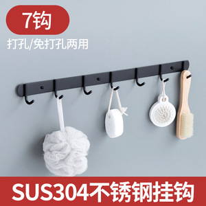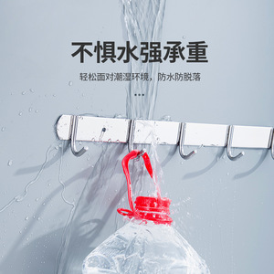 免打孔排钩304不锈钢多排挂钩厨房浴室衣帽钩子强力承重粘钩壁挂