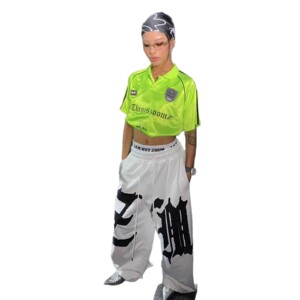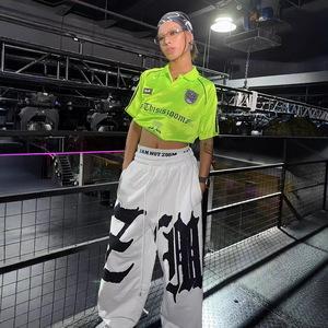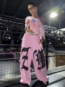 垂感嘻哈字母大印花抽绳卫裤女秋季hiphop跳舞jazz爵士舞弯刀裤潮