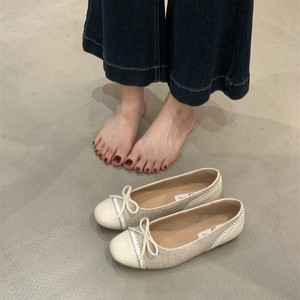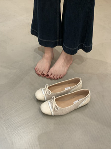 法式2025年蝴蝶结一脚蹬奶奶鞋平底浅口单鞋软底豆豆鞋芭蕾舞鞋女