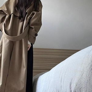 2025年廓形中长款休闲英伦风衣外套春秋款翻领高个子立领系带大衣