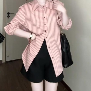 2025年绝美条纹衬衫女春秋新款感衬衣休闲宽松显瘦百搭长袖上衣